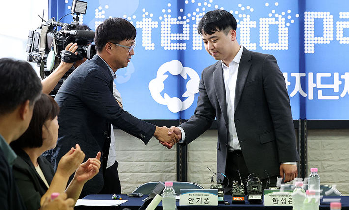 전공의와 환자단체가 의정 갈등이 시작된 지 1년 6개월 만에 마주했다. 안기종 한국환자단체연합회 대표와 한성존 대한전공의협의회 비상대책위원장은 28일 오후 서울 영등포구 한국환자단체연합회에서 만나 환자, 전공의 각 입장과 상황을 말했다.