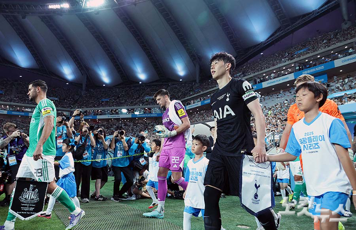 '전설' 손흥민이 영국 프리미어리그 토트넘과 10년간의 동행에 마침표를 찍었다. 손흥민은 3일 오후 서울 마포구 월드컵경기장에서 열린 '2025 쿠팡플레이 시리즈' 프리미어리그 토트넘과 뉴캐슬의 경기에서 변함 없이 주장 완장을 착용하고 65분을 소화하고 무함마드 쿠두스와 교체됐다. 비록 공격 포인트는 없었지만, 뜨거운 눈물을 흘리며 고별전을 마쳤다. 손흥민은 전날 사전 기자회견에서 "올여름 토트넘을 떠나기로 했다"고 밝힌 바 있다. 차기 행선지로는 LAFC(미국)가 급부상하고 있다.
