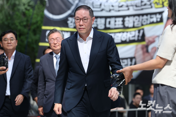 '집사게이트' 의혹 조현상 HS효성 부회장, 특검 출석 '집사 게이트' 의혹을 받고 있는 조현상 HS효성 부회장이 4일 오전 서울 종로구 KT 광화문빌딩에 마련된 김건희특검 사무실로 출석하고 있다. 조 부회장은 김건희씨의 집사로 불린 김예성씨가 설립에 참여한 IMS모빌리티에 부당하게 투자한 혐의(업무상 배임)를 받는다. 류영주 기자