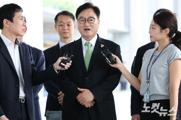 우원식 국회의장이 7일 오전 서울 서초구 서울고등검찰청에 마련된 내란특검 사무실에 12·3 비상계엄 당시 국민의힘 등이 국회 계엄 해제 요구한 표결을 방해했다는 의혹과 관련해 참고인 조사를 받기 위해 출석하고 있다. 류영주 기자