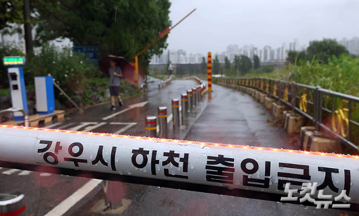 서울 동북·서남·서북권에 호우주의보가 내려진 13일 오전 서울 양천구 안양천 입구가 통제돼 있다. 이날 새벽부터 많은 비가 내려 청계천, 안양천 등 시내 전체 29개 하천 출입이 통제됐다. 기상청은 "짧은 시간에 강한 강수가 내리면서 하천의 물이 갑자기 불어날 수 있으니 접근 및 야영을 자제하고 하늘이 갑자기 어두워지는 경우 안전한 곳으로 이동해야 한다"고 당부했다.