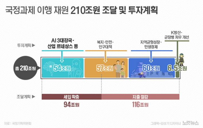 정부는 이들 사업을 포함해 5대 분야, 123대 국정과제 이행을 위한 300여개 사업에 2030년까지 210조원의 재정을 투입하겠다고 밝혔다.