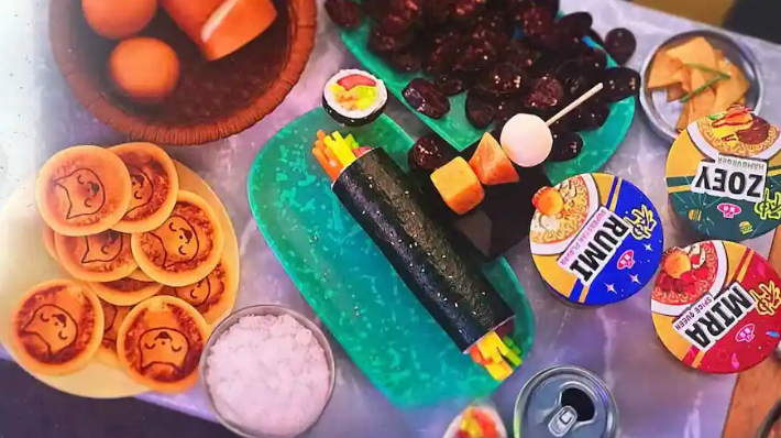 ◆ 김헌식> 그렇습니다. 일단은 이제 섬세한 고증이 굉장히 중요했다는 거잖아요. 저는 깜짝 놀랄 게 분식점이 등장하는데 워낙 이제 분식점이 세계적으로 지금 핫하니까요. 여기에 김밥이나 순대 이런 게 등장하는데 그 초록색 점박이가 들어 있는 접시 아시죠? 거기에 나와 있는 거예요.