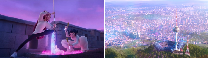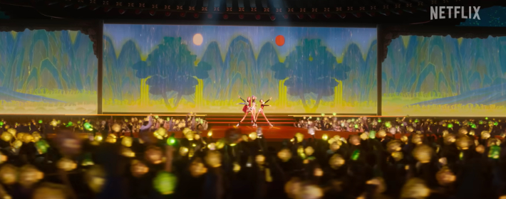 ◆ 김헌식> 일단은 처음에는 K-POP 팬들이 이제 선택과 집중을 했습니다. 그런데 저는 놀라웠던 게 뭐냐 하면 매기 강 감독 그러니까 강민지 감독이 정확하게 그걸 꿰뚫고 만들었는지에 대해서는 이제 가늠이 안 됐었는데 나중에 여러 가지 인터뷰 자료를 보니까 정확하게 꿰뚫고 있었고 자신이 K-POP 팬이었어요. 그런데 중요한 거는 K-POP의 본질이 무엇인가를 정확하게 알고 있고 이거를 스토리 라인과 결합을 시켰다는 겁니다.
