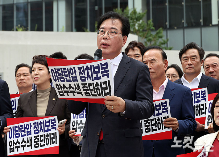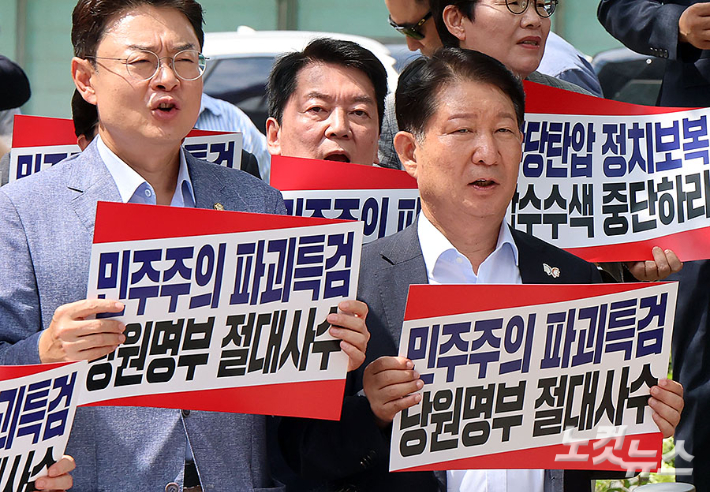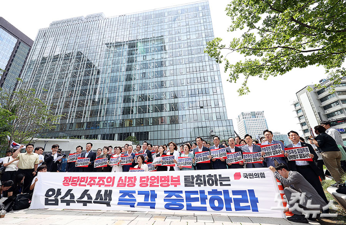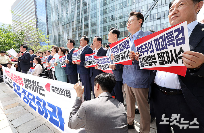 김건희 특검 앞에 모인 국민의힘…당사 압수수색 규탄[노컷네컷]