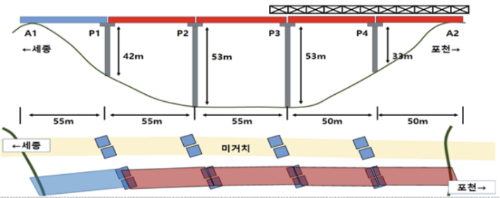 사고가 발생한 세종-안성 간 청용천교 공사 현장은 교각 사이를 잇는 상판과 보를 공장에서 사전 제작한 뒤 현장에서 조립하는 'DR거더 런칭 가설 공법'으로 진행됐다. 보통은 크레인으로 지상에서 거더를 들어 올려 설치하는데, DR거더는 특수 설치 장비인 런처를 활용해 거더를 밀어 설치하는 기술이다.