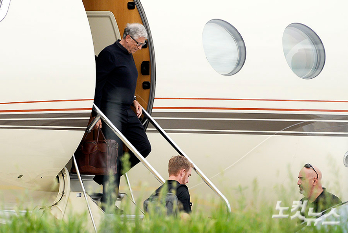 빌 게이츠 마이크로소프트(MS) 창업자가 전용기를 타고 20일 오후 서울 강서구 서울김포비즈니스항공센터를 통해 입국하고 있다. 2022년 이후 3년 만에 한국을 찾은 빌 게이츠는 바이오·제약 업체들과 협력을 모색하고 김민석 국무총리 면담, 국회 외통위 간담회를 비롯해 tvN '유 퀴즈 온 더 블록' 방송 출연 등의 일정을 소화할 것으로 알려졌다.
