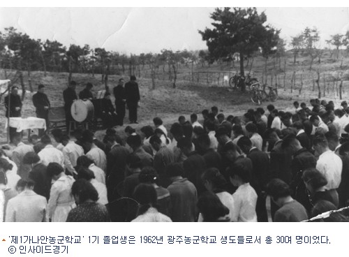 의식·생활·인격 혁명의 모태, 젖과 꿀이 흐르는 ''''가나안''''의 이상 ''''제1가나안농군학교''''는 1962년 2월 1일 지금의 경기도 하남시 풍산동에서 개교했다. ''''가나안''''이라는 의미는 첫째 ''''약속과 희망의 땅'''', 둘째 ''''잃은 것을 회복함'''', 셋째 ''''하느님이 감독하심'''', 넷째 ''''젖과 꿀이 흐르는 복지(福地)''''라는 뜻이 담겨 있다.
