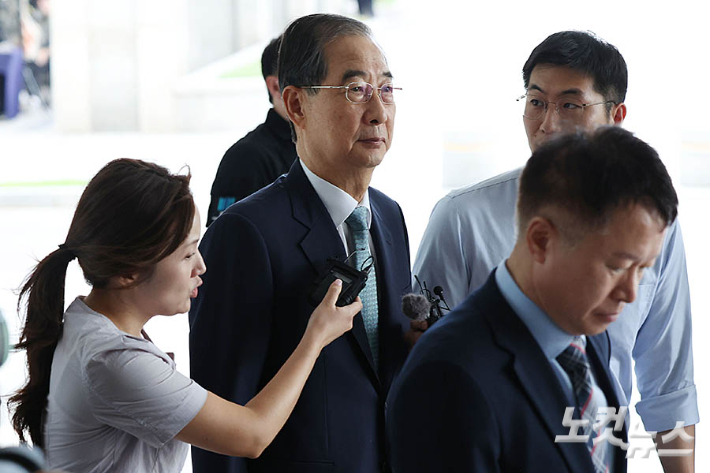 사흘 만에 재소환된 한 전 총리는 '내란 가담·방조 의혹을 여전히 부인하는지', 계엄 문건을 윤 전 대통령으로부터 받았는지', '진술 번복하신 이유가 무엇인지' 등 취재진의 질문에 답하지 않고 곧장 조사실로 향했다.