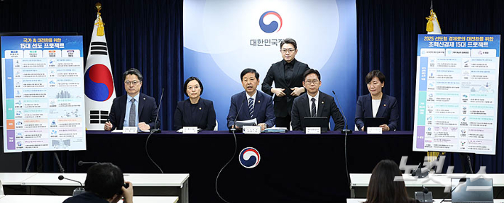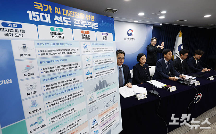 구윤철 경제부총리 겸 기획재정부 장관이 22일 오후 서울 종로구 정부서울청사에서 열린 새정부 경제성장전략 관계부처 합동 브리핑에서 국가 AI 대전환을 위한 15대 선도 프로젝트를 발표하고 있다.