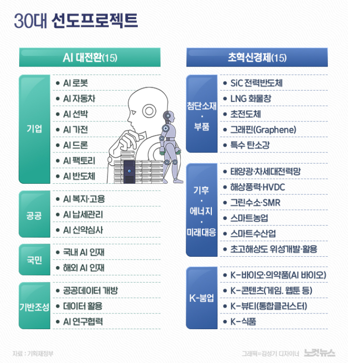 30대 선도프로젝트 중 절반이 AI대전환이라면, 또 어떤 기술 개발이 나머지 15개 프로젝트에 이름을 올렸나요.