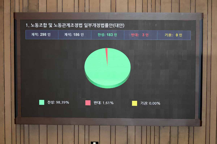 국회는 전날부터 진행된 노란봉투법에 대한 필리버스터(무제한토론)를 표결로 종결시키고 재석 186인 중 찬성 183인, 반대 3인으로 가결했다. 노란봉투법 처리에 반대해 온 국민의힘 의원들은 대부분 표결에 불참했다.