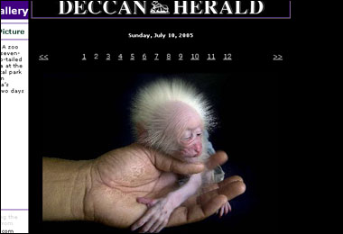 인도 가우하티의 한 동물원에서 태어난 이 새끼 원숭이는 이틀전 엄마 원숭이가 죽어 현재 동물원 사육사들의 극진한 보살핌을 받고 있다고 인도 데칸헤랄드 인터넷판이 10일(현지시간) 보도했다.