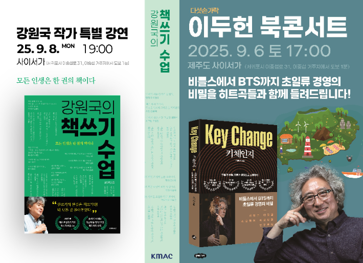 한편 강 작가의 강연 전인 6일에는 같은 장소에서 오후 5시 그룹 '다섯손가락'의 리더이자 싱어송라이터인 이두헌 작가의 신간 '키 체인지' 북콘서트가 열린다. 이 작가는 17년간 삼성, SK, 현대카드 등에서 음악과 경영을 접목하는 등 리더십 강의를 해왔다.