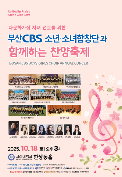 부산CBS(대표 최승진)는 10월 18일 오후 3시 고신대학교 한상동홀에서 '부산CBS소년소녀합창단과 함께하는 찬양축제'를 연다고 4일 밝혔다.
