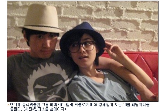 타블로와 강혜정 커플 9월 초 결혼과 강혜정의 임신 소식을 전했다. 현재 강혜정은 임신 10주에 접어들었다.