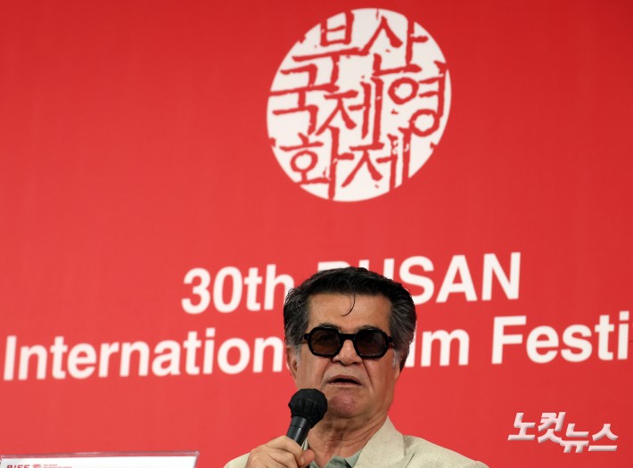 자파르 파나히 감독이 18일 오전 부산 해운대구 영화의전당에서 열린 ‘제30회 부산국제영화제(BIFF)’ 올해의 아시아영화인상 갈라 프레젠테이션 ‘그저 사고였을 뿐’ 기자회견에 참석해 취재진의 질문에 답하고 있다.