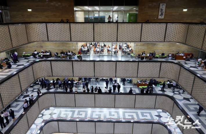 이재명 정부 첫 국정감사 첫 날인 13일 국회 본청이 피감기관 관계자들로 붐비고 있다.