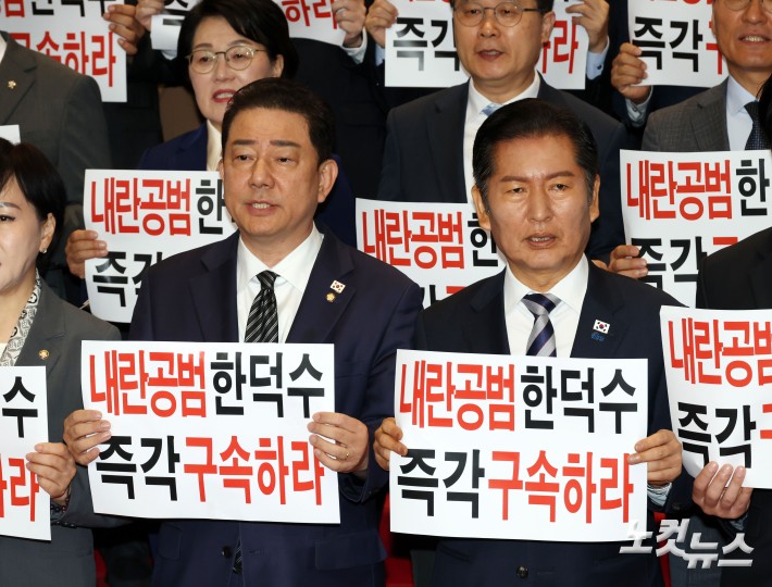 '한덕수 등 국무위원 내란공모 규탄' 외치는 정청래-김병기