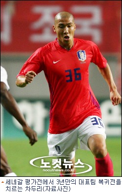 3년만에 대표팀 복귀전을 치르는 차두리(프라이부르크)가 세네갈 평가전에 오른쪽 풀백으로 출격한다.