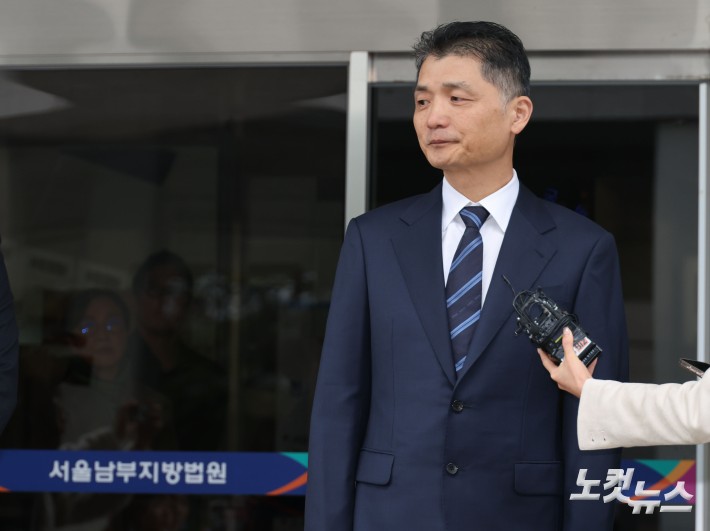 SM엔터테인먼트 시세 조종 혐의로 재판에 넘겨져 1심에서 무죄를 선고받은 카카오 창업자 김범수 경영쇄신위원장이 21일 오전 서울 양천구 남부지방법원을 나서며 입장을 밝히고 있다.