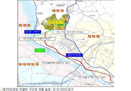 경기도는 교하신도시를 중심으로 한 경기 서북부 교통을 개선한다는 계획에 따라 지난 2007년 12월, 제2자유로 건설을 위한 첫 삽을 떴다. 완공이 내년으로 다가온 가운데, 지난달 30일 ''김포~관산'' 구간이 임시 개통됐다.