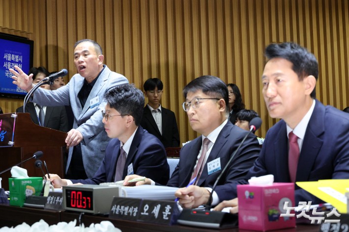 서울시 국감 출석해 답변하는 명태균
