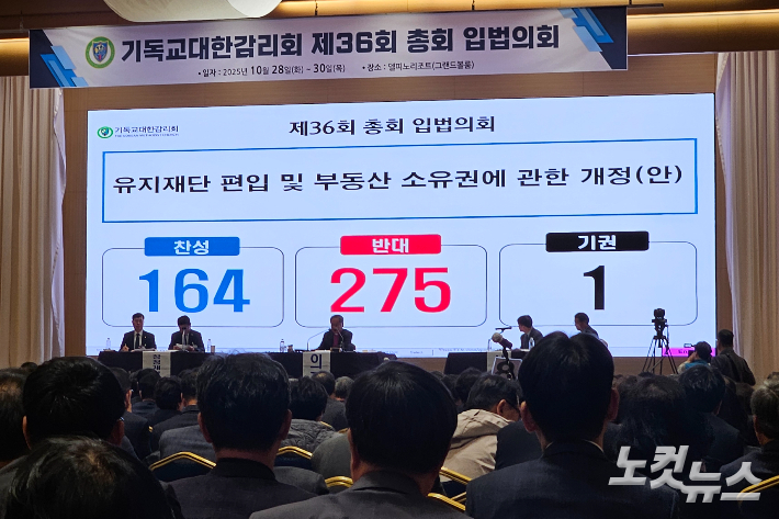 주요 쟁점이었던 '유지재단 편입 및 부동산 소유권에 관한 개정안'도 찬성 164표, 반대 275표, 기권 1표로 부결됐다.