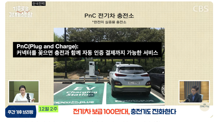 ◇ 최서윤> 맞습니다. 그리고 여러 기능들을 말씀드렸는데 제가 제일 관심이 가는 스마트 기능이 따로 있습니다. 사용자가 생각할 때 다양한 편의 서비스, 새로운 서비스 같은 거 누릴 수 있어야 스마트 기능이라고 할 수 있잖아요. 중기적으로 도입해 보려는 서비스 중에 우선 PnC라는 기능이 있어요. 플러그 앤 차지(Plug and Charge)라고 해서 커넥터에 딱 꽂으면 충전만 하는 게 아니라 자동으로 인증돼서 결제까지 할 수 있는 서비스라고 합니다. 그리고 또 장기적으로는 V2G(Vehicle to Grid)라는 서비스가 있어요. 차량(Vehicle)을 전력망(Grid)으로 연결하는 시스템이에요. 그래서 전기차 배터리에 저장된 남는 전기를 전력망으로 보내서 돈을 받고 팔 수도 있고요.