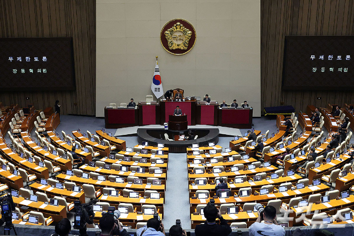 더불어민주당은 곧바로 필리버스터 종결 신청을 함에 따라 필리버스터가 시작된 지 24시간이 지난 23일 강제 종료한 뒤 내란전담재판부 설치법을 표결 처리할 방침이다.