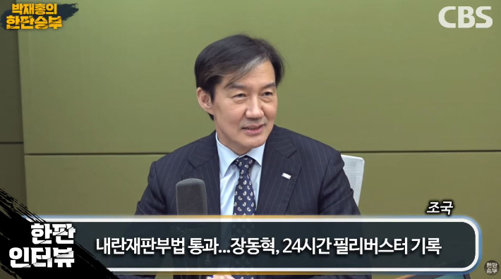 ◇ 김광일> 박재홍의 한판승부 2부 문을 열었습니다. 저는 박재홍 앵커를 대신해서 오늘 진행을 맡은 CBS 기자 김광일입니다. 이번 시간에는 조국혁신당의 조국 대표 만나보겠습니다. 대표님 어서 오십시오.