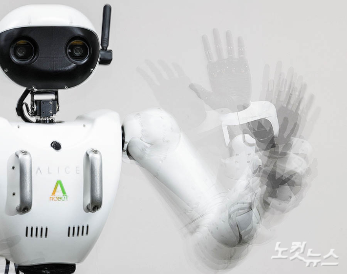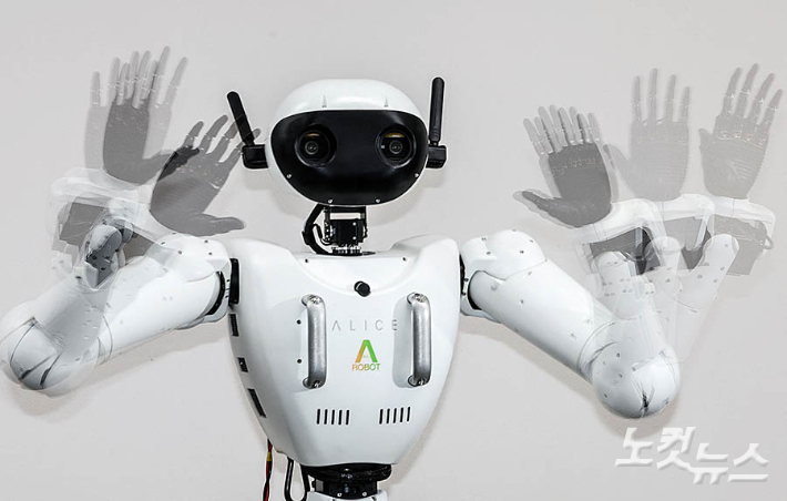사진은 에이로봇의 '앨리스4'가 2026년 새해를 맞아 팔을 흔들어 인사하는 모습. (다중노출 촬영)