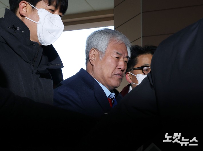 지난해 1월 발생한 서울서부지방법원(서부지법) 난동 사태의 배후로 지목된 사랑제일교회 전광훈 씨가 13일 서울 마포구 서부지법에서 열린 구속 전 피의자 심문(영장실질심사)에 출석하고 있다.