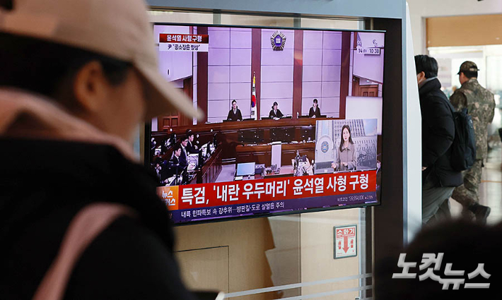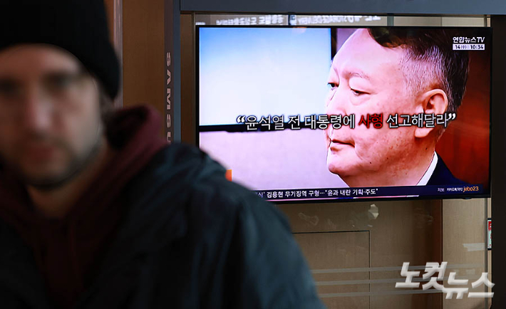 내란 우두머리 혐의로 기소된 윤석열 전 대통령에게 법정 최고형인 사형이 구형된 가운데 14일 오전 서울역 대합실에서 시민들이 관련 뉴스를 시청하고 있다.