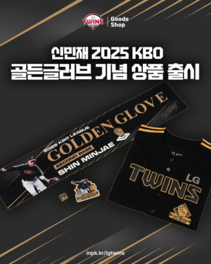 프로야구 LG가 신민재의 2루수 골든 글러브 수상 기념 상품을 내놓는다.