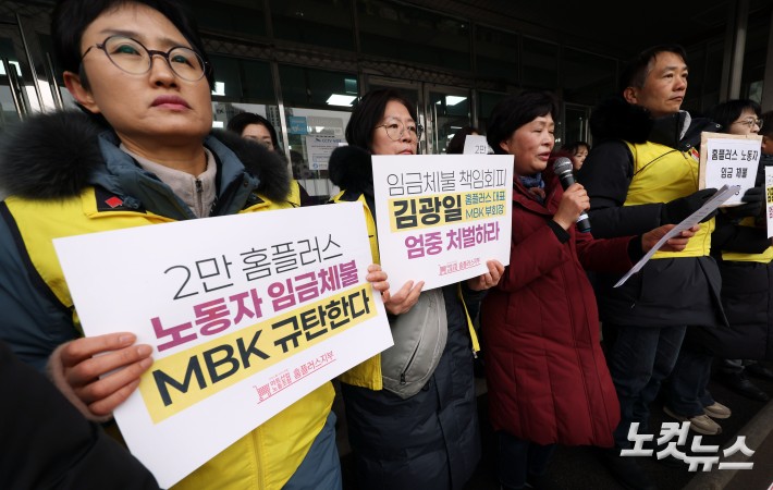 '2만 홈플러스 노동자 임금체불 MBK 규탄'