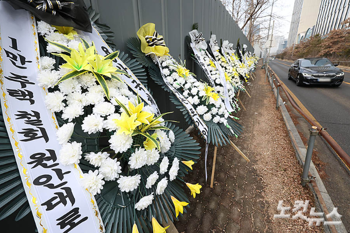 '정부 공급대책 항의' 근조화환 줄줄이[노컷네컷]