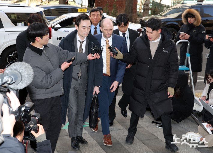 경찰이 쿠팡의 개인정보 유출 사건과 관련해 허위로 증언한 의혹을 받는 해롤드 로저스 쿠팡 임시 대표가 6일 서울 마포구 서울경찰청 반부패수사대에 피의자 신분으로 출석하고 있다. 로저스 대표의 경찰 출석은 이번이 두 번째다.