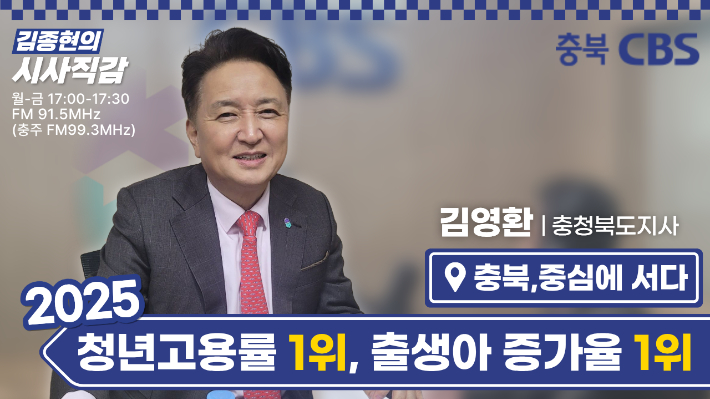 ◇ 김종현> <시사직감>은 매주 화요일 이 시간 고정 코너로 여러분 만나고 있습니다. <충북, 중심에 서다> 코넙니다. 충청북도의 현안과 충청북도가 추진하는 다양한 정책 각 실국의 책임자들이 직접 출연해서 진단하고 소개하는 시간인데요. 오늘은 특별히 김영환 충북지사 스튜디오에 직접 나오셨습니다. 충청북도가 지난해 청년 고용률과 연간 출생아 수 증가율 모두 전국 1위를 기록했는데요. 수도권 집중과 저출생이라는 구조적 위기 속에서도 충북이 보여준 이 같은 성적표 중심으로, 김영환 지사와 함께 이야기 나눠보도록 하겠습니다. 김영환 충북지사님, 안녕하십니까?