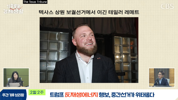 ◇ 최서윤> 보궐선거라서 임기가 그렇게 오래 남지 않았잖아요. 올해 11월에 다시 선거가 치러질 텐데 그때 이 텍사스 결과가 어떻게 나오는지 지켜볼 필요가 있을 것 같아요. 여기에 더해서 트럼프랑 공화당 의원들을 웃을 수 없게 하는 이야기들이 계속 나오고 있다고 해요. 트럼프 대통령 대표적인 정책이 화석연료로의 복귀와 재생에너지 중단이잖아요.