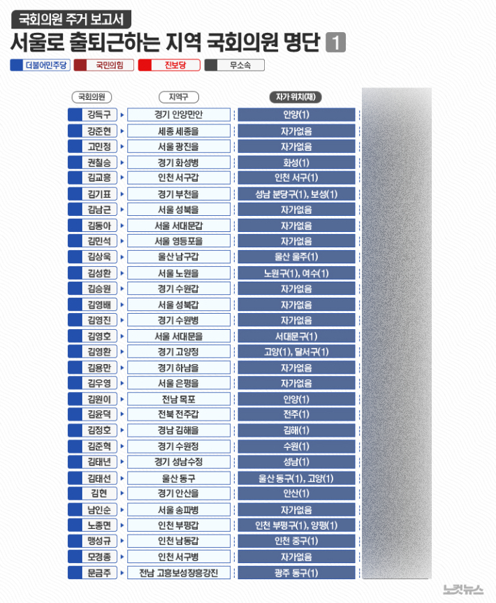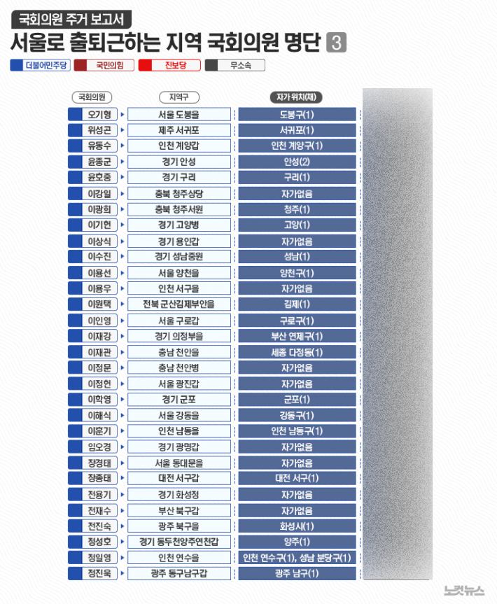 ⑤"원룸 대신 공항길"…여의도로 출퇴근하는 국회의원 명단