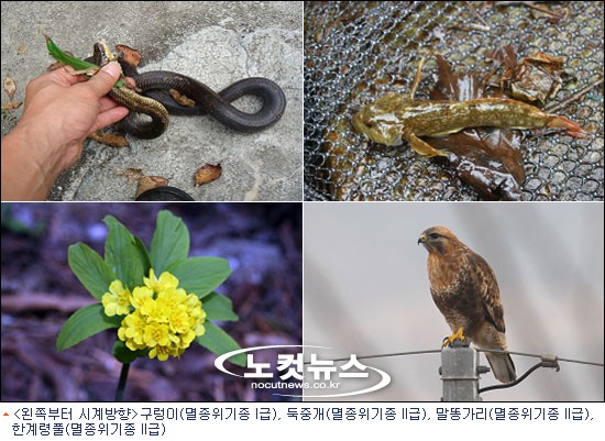 속리산권에서는 수달, 까막딱다구리, 담비 등 5종의 멸종위기종이 확인됐고, 태백산권에서는 매, 구렁이, 하늘다람쥐, 한계령풀, 둑중개 등 멸종위기종 19종이 관찰됐다. 반면 마루금은 많은 등산객에 의한 주변 교란 및 야생식물 무단채취, 밀렵 등이 발생하고 있어 이에 대한 철저한 단속과 종 보존 및 밀도 증진을 위한 관리가 필요한 것으로 나타났다.
