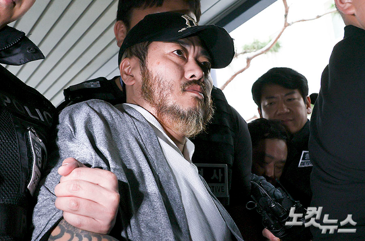 필리핀에서 송환된 '마약왕' 박왕열이 27일 오전 경기 의정부시 의정부지방법원에서 열린 구속 전 피의자심문(영장실질심사)에 출석하고 있다. 박왕열은 필리핀에서 한국인 3명을 살해해 현지 교도소에 복역하면서도 국내에 다량의 마약을 유통한 혐의로 지난 25일 임시 인도돼 경찰의 수사를 받고 있다. 의정부=류영주 기자