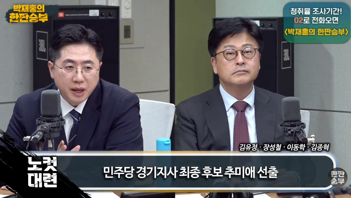 ◆ 장성철> 그러니까 상황을 보면 TV토론 보면 정책적으로 준비가 되어 있지 않은 것 같단 말이에요. 질문을 하면 당신이 먼저 얘기 한번 해 보세요. 막 이렇게 얘기하잖아요. 현직 도지사 도정 평가가 나쁘지도 않은데 어떤 감정이라든지 어떤 계파에 의해서 이렇게 경기도라는 중요한 지역의 후보를 뽑는다는 것은 민주당의 건강함을 잃어버리는 것이 아닌가라는 생각이 들고 어쨌든 청와대는 큰 숙제를 지금 떠안았다. 걱정거리를 떠안았다.