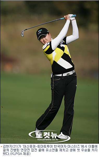 프로 데뷔 3년차 김현지(21.LIG)가 한국여자프로골프(KLPGA)투어 ''대신증권-토마토투어 한국여자 마스터즈''(총상금 30만달러, 우승상금 6만달러)에서 이틀에 걸쳐 진행된 연장전 접전 끝에 생애 첫 우승을 차지했다.