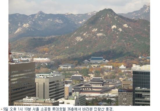 붉고, 노란옷을 입은 인왕산 풍경이 선명하게 들어옵니다.