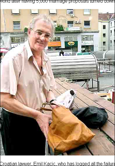 그는 인터뷰에서 "신문에도 ''재력과 자상함을 겸비한 변호사 남성이 결혼할 아름다운 여성을 찾고 있습니다''라는 구인광고를 수차례 내놓은 후 연결된 여성들에게 청혼을 시도했지만 받아들인 여자는 단 한 명도 없었다"며 "심지어는 길에서 만난 여자들에게까지 청혼했지만 그들은 언제나 싫다고 대답했다"고 말했다.