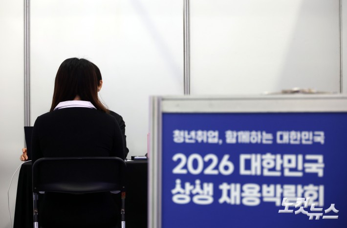 28일 서울 서초구 aT센터에서 열린 2026 대한민국 상생 채용박람회를 찾은 한 구직자가 면접 컨설팅을 받고 있다.