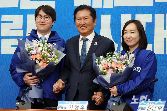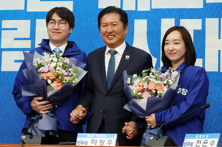 정청래 민주당 대표는 29일 국회에서 인재영입식을 열고 "민주당의 새로운 희망이 될 두 분"이라며 하 전 수석과 전 전 대변인을 소개했다. 그는 "하 전 수석은 제가 삼고초려를 넘어 '삼십고초려'를 해서라도 반드시 모셔 오고 싶었던 인재"라고 했다.