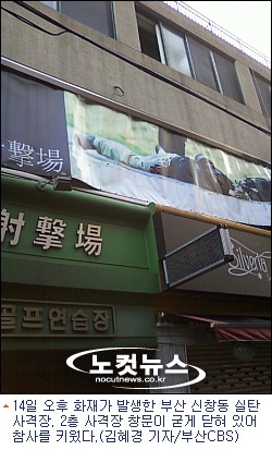 14일 오후 부산 신창동 실탄사격장에서 일본인 관광객을 포함 10명이 숨지고 6명이 부상당한 화재참사가 발생했다. 2층 사격장 창문이 굳게 닫혀 있어 참사를 키웠다.(김혜경 기자/부산CBS)